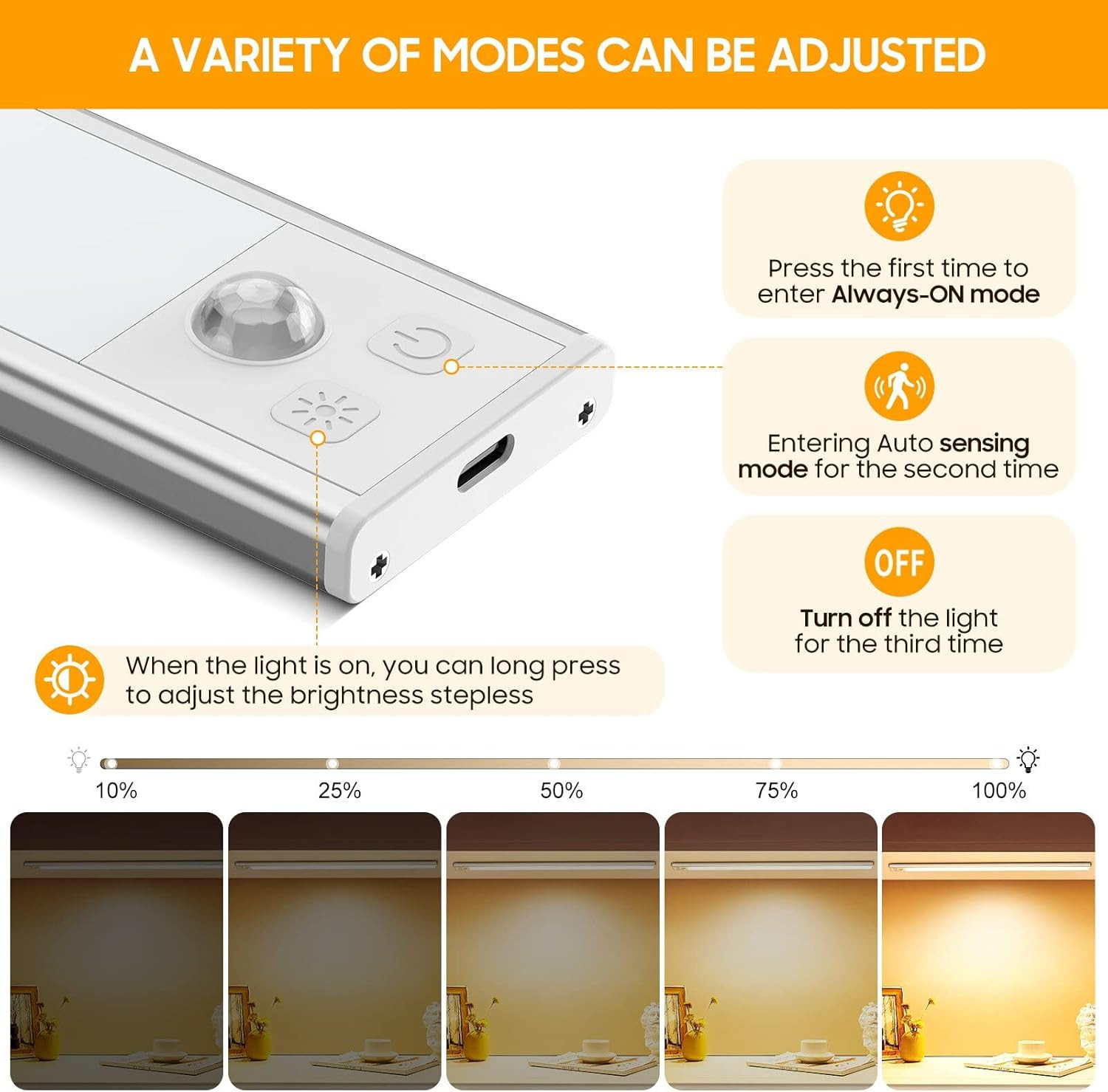 Luce Armadio LED, con Sensore di Movimento, 41CM Magnetica Ricaricabile Luce Sottopensile Dimmerabile Lampada per Cucina Scale Soggiorno Bagno Camere da Letto